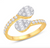 Pear Edge Baguette Open Cuff Diamond Women's Ring (0.75CT) in 10K Gold - Size 7 to 12